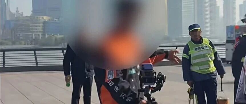 2025年12月11日10时30分许,来沪人员袁某(男,32岁)身着网上购得的快递员工作服,在外滩江堤网络直播时占用公共区域影响游客通行秩序,外滩风景区保安员对其开展劝阻时,袁某拒不配合管理,进行言语挑衅并煽动直播间观众“人肉”保安员,造成恶劣社会影响。目前,袁某已被警方依法处以行政拘留。