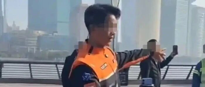 此前据北京青年报报道,近日,网红博主“帧十八”穿着淘宝闪购外卖工服,在上海外滩观景平台上直播,直播期间被保安劝阻,喊话粉丝“人肉”保安。相关视频在网络上传播。