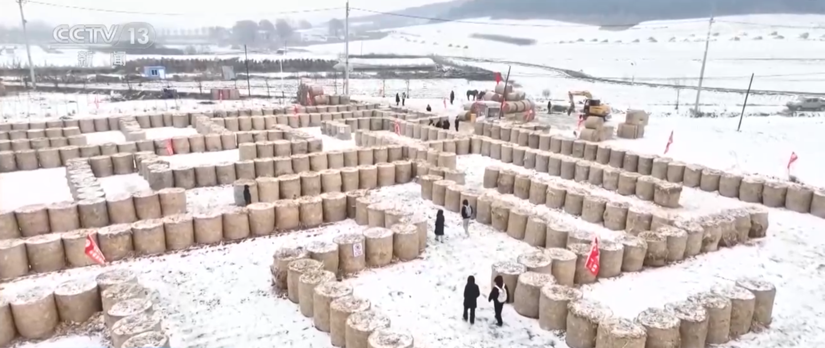感受过了大集的热闹劲儿,我们再去东北乡村看看。在辽宁沈阳魏家沟村,往年这个时候已经到了冬季农闲时节。但现在,一些村民利用秋收后的秸秆打造出别具一格的“草滚子迷宫”,让原本寂静的村庄在这个冬天又焕发出滚烫人气。