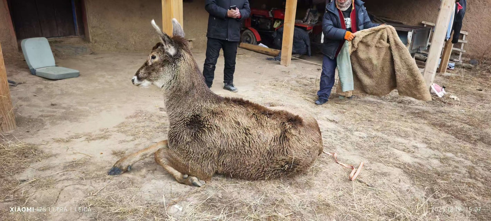 为确保动物安全,救援人员首先将特制绳索精准套入白唇鹿身躯。随后,救援人员在冰窟旁,用身体作为“生命支点”拉起白唇鹿,岸边救援人员则通过绳索系统同步发力,形成的双重保障。经过一小时的协同作战,三头白唇鹿被安全转移至岸边。经当地牧民协助恢复体温后,现场检查确认,三头白唇鹿生命体征正常,符合放归条件,目前已顺利回归自然栖息地。