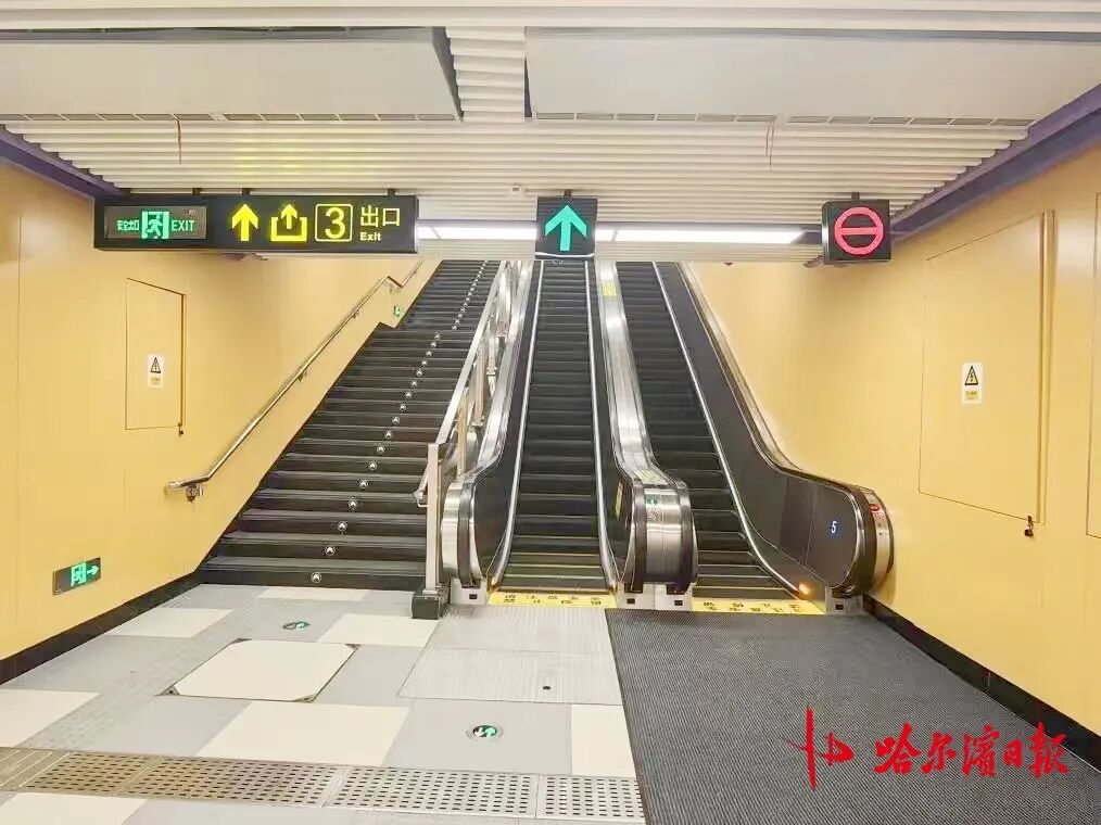 上海街站坐落于道里区核心腹地,地处友谊路与上海街交会处,周边酒店云集、商业氛围浓厚。作为地下二层结构的现代化站点,新启用的3号出入口在设计上兼具美学价值与实用功能,高镂空率设计与鲜明色彩撞色搭配相得益彰,既与车站整体风格一脉相承,又以现代时尚的视觉呈现,成为城市地下空间的亮眼名片,让市民游客在出行中感受城市建设的精致品位。