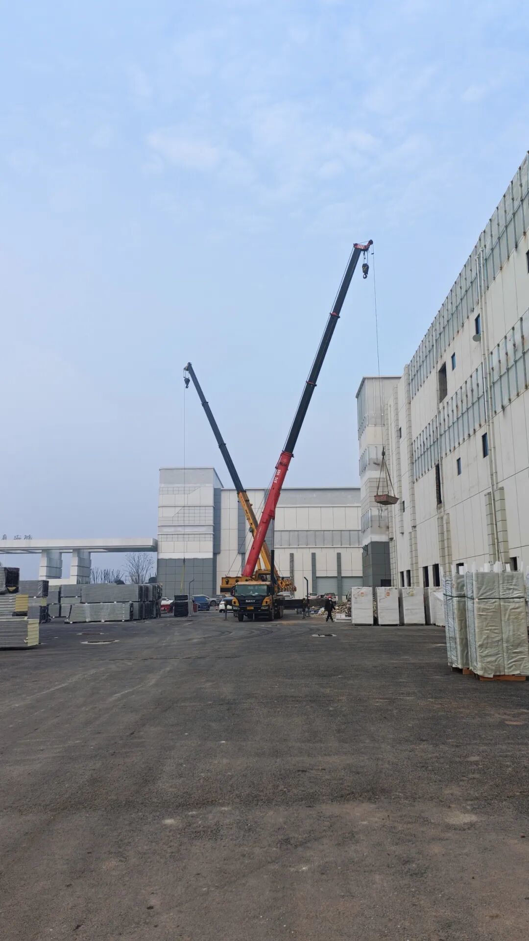 冬阳暖照下,电焊火花闪烁,吊车巨臂挥舞,工人们身影忙碌——这里,正上演着一场与时间赛跑的“冲刺战”。