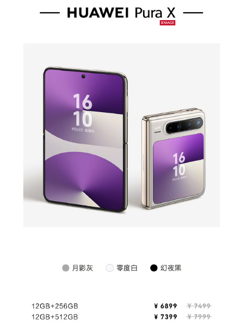 12月20日,华为终端宣布,华为阔折叠手机Pura X开启降价优惠,标准版优惠600元,优惠后6899元起,典藏版优惠800元,优惠后8199元起。