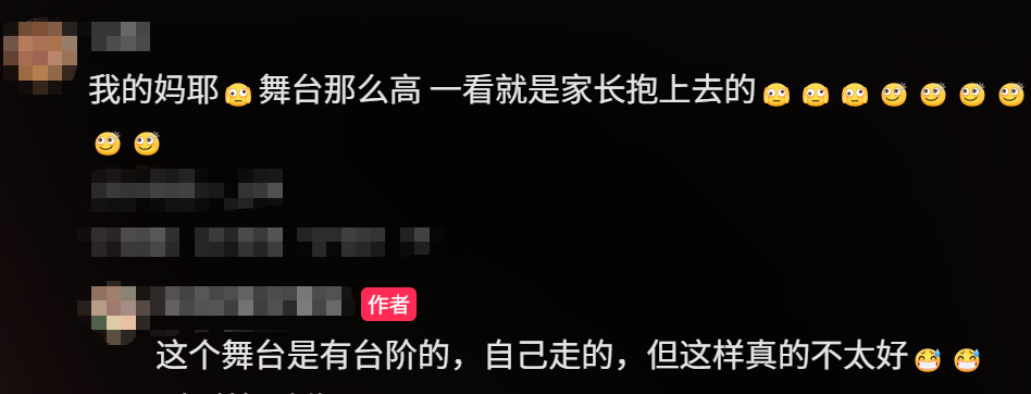 有网友质疑,舞台的台阶很高,小朋友是怎么自己走上去的?发布视频的网友回应,是孩子自己从舞台的台阶上走上去的。