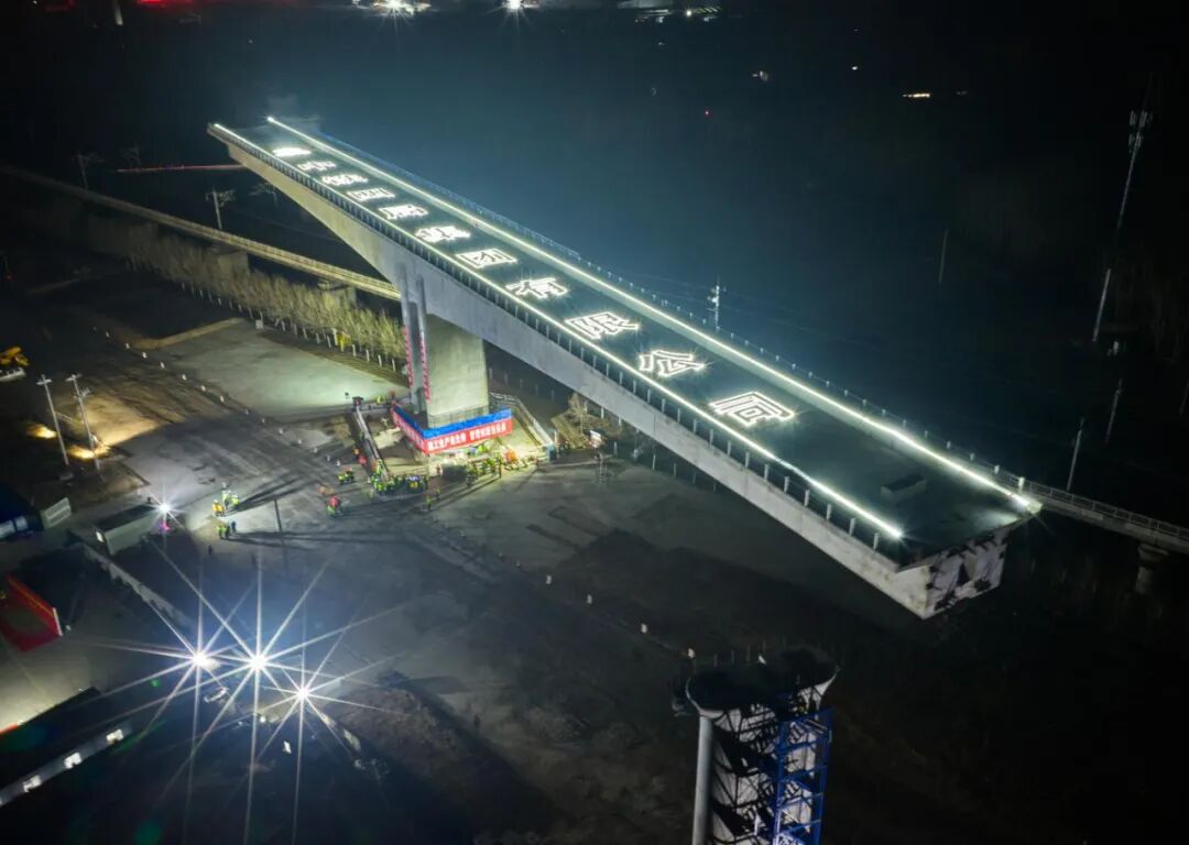这是潍宿高铁首个跨高速铁路转体梁,也是山东省在建高铁项目最重的转体梁工程,打通了架梁通道上关键断点,为后续箱梁架设工作奠定了坚实基础。