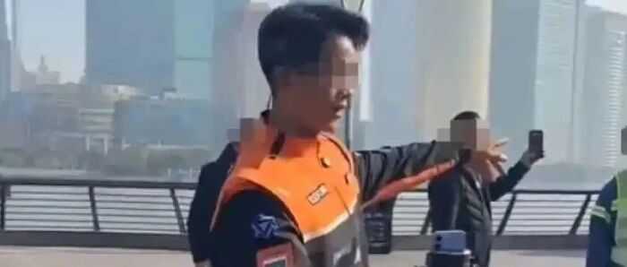 近日,某网红博主穿着快递员工服,在上海外滩观景平台上直播,直播期间被保安劝阻,喊话粉丝“人肉”保安。相关视频在网络上传播。