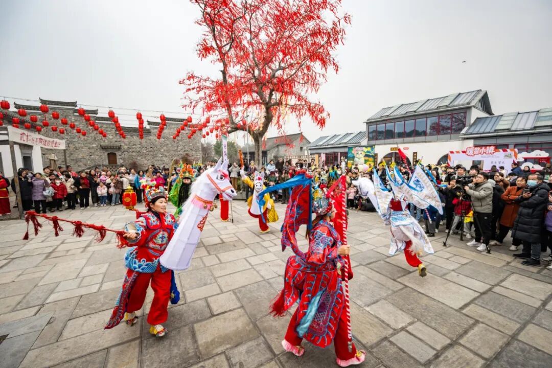 现场,灵动矫健的舞龙表演惊艳亮相,表演者们步伐矫健,龙身腾跃翻飞、红绸迎风漫卷,引得现场掌声不断;省级非遗项目大马灯栩栩如生的马形道具惟妙惟肖,表演者们配合默契、步伐稳健,一招一式尽显古朴喜庆韵味,将平安顺遂的新年祝福传递给每一位游客。