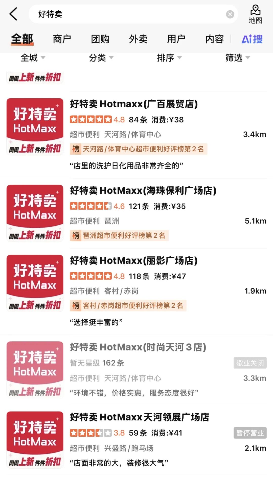 另据报道,过去一年,好特卖的扩张步伐明显收窄。2023年4月,好特卖开放加盟。彼时,好特卖门店数为500多家、覆盖32个城市,其计划全年新增门店600家左右。2024年7月,好特卖联合创始人张宁在一次媒体采访时透露,截至2024年6月共计有门店960家。而到2025年,新增门店数量已大幅回落至几十家规模,且部分城市已不接受新加盟商加入。