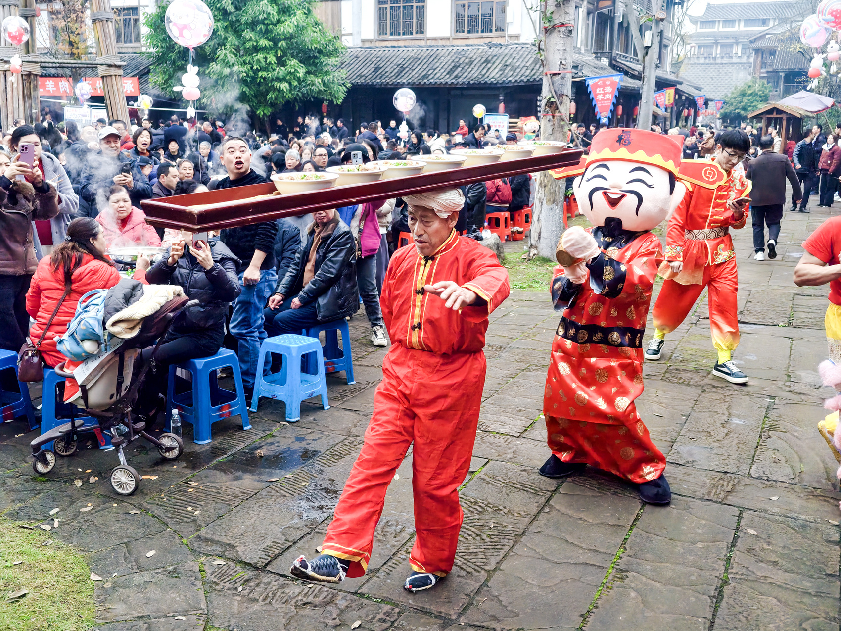 “开席,吃羊肉啦!”12月20日下午,冬至前夕,上千名来自四面八方的食客相聚尧坝古镇,共享红汤羊肉“长街宴”,共赴“冬至之约”,感受古镇驿站的人间烟火。