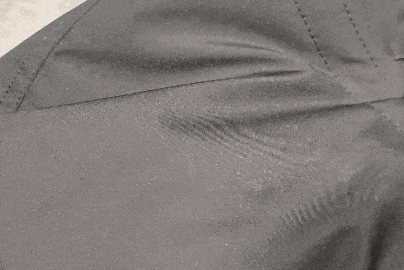 这件棉服外层为仿荷叶疏水层,再加上P棉本身的拒水性,辅助防潮。