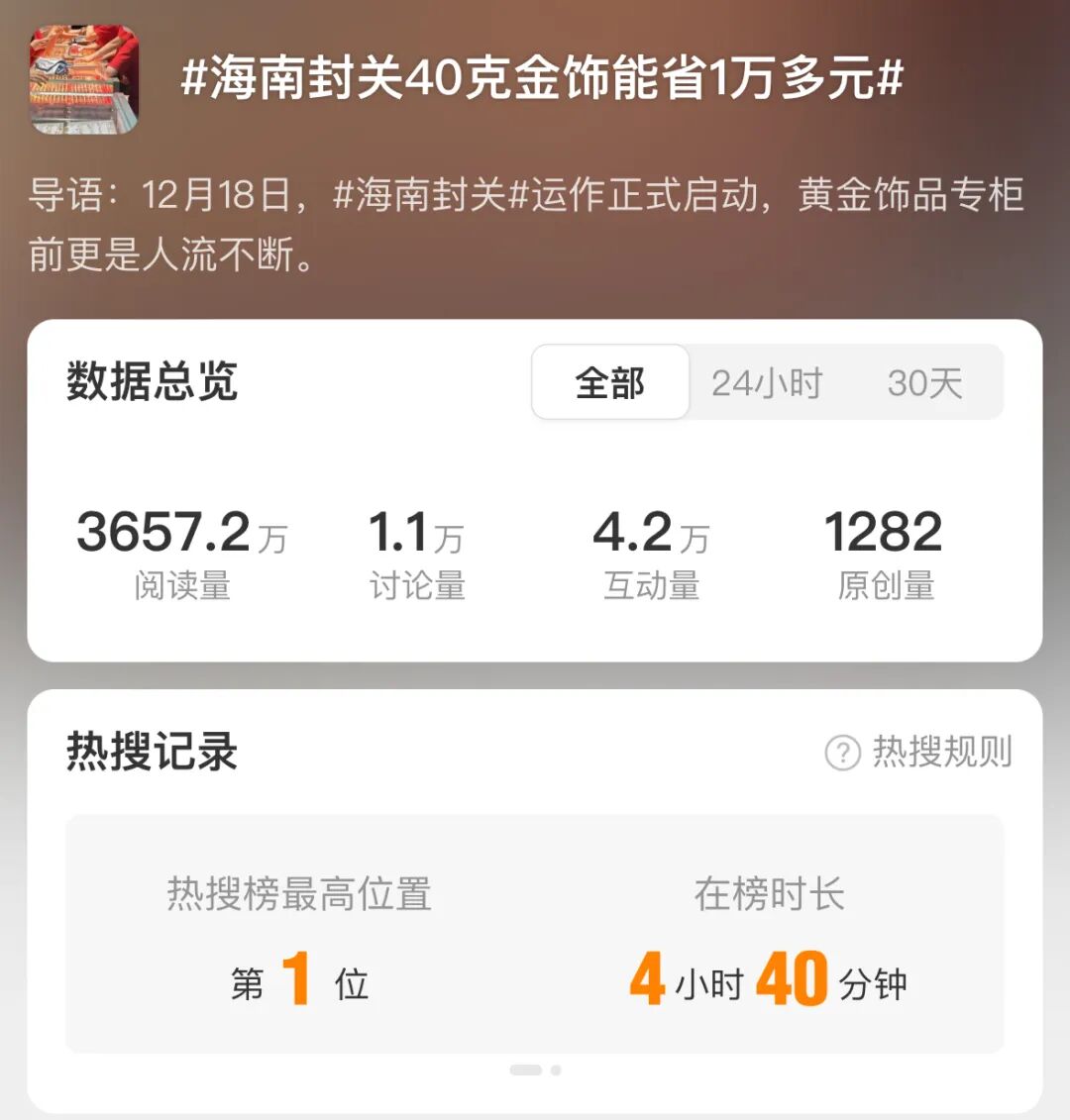 #海南封关40克金饰能省1万多元#