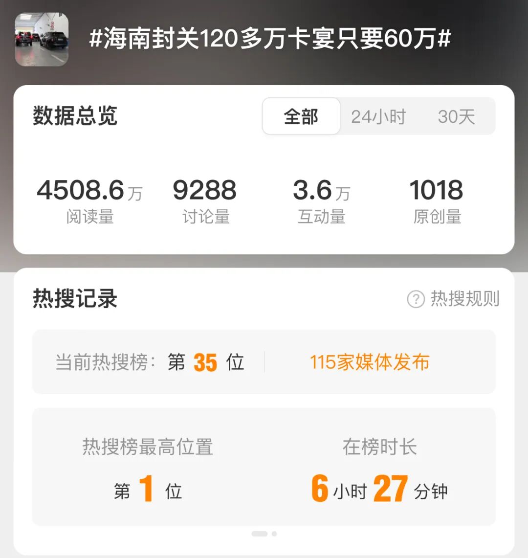 #海南封关120多万卡宴只要60万#