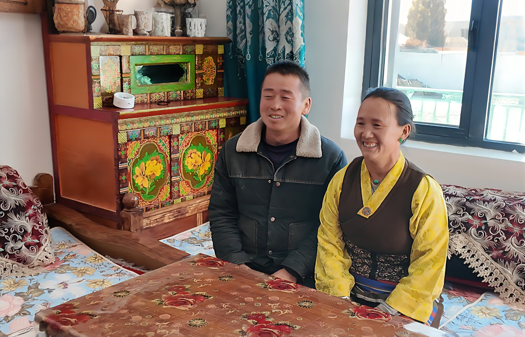 作为藏汉通婚的家庭,次仁卓玛和赵小红的爱情曾羡煞旁人。2017年,甘肃汉子赵小红进藏务工,与当地姑娘次仁卓玛相恋成家。租房一年后,两人靠打工攒钱建起了土坯房,一住就是七年。“那是我们用汗水攒下的家,每一块土坯都浸着希望。”在朵玛村,他们还是民族团结进步示范户。