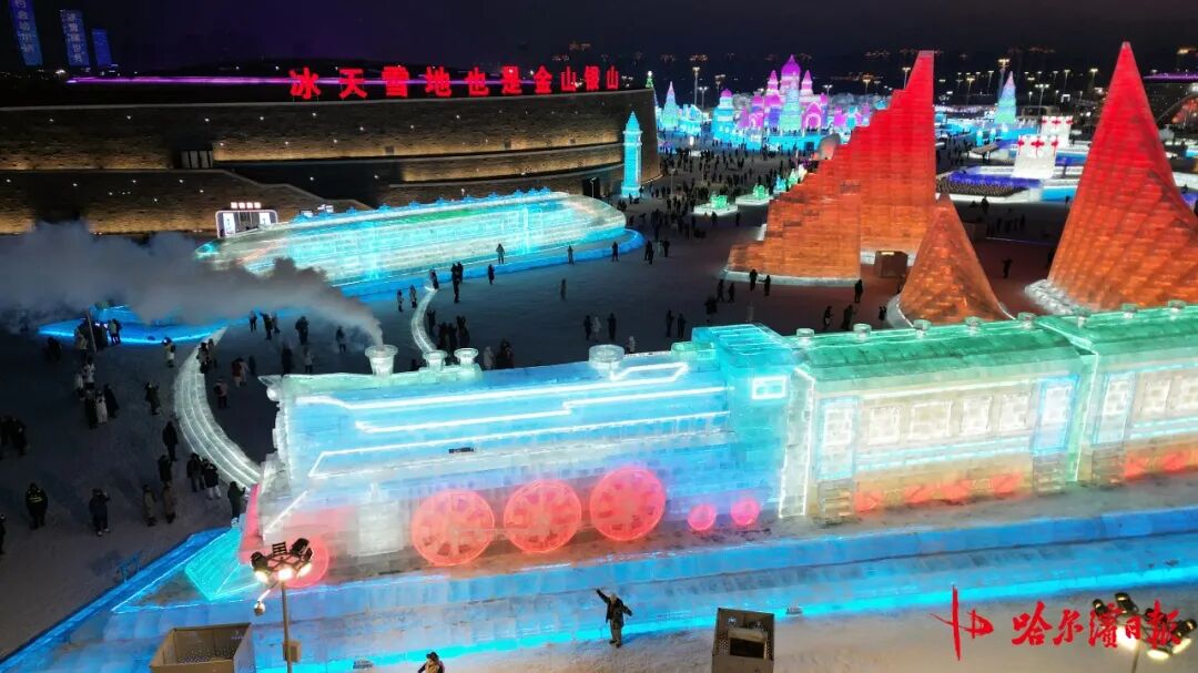 从百年蒸汽机车到现代高铁,两座冰雕在冰雪天地中完成了一场跨越时空的对话,既展现了哈尔滨深厚的城市文化底蕴,也以“体育+文旅”“科技+艺术”的创新形式,为冰雪旅游注入了新活力。这个冬天,不妨走进哈尔滨冰雪大世界,亲耳聆听冰火车的“呜鸣”,亲眼见证冰与火的奇妙邂逅。