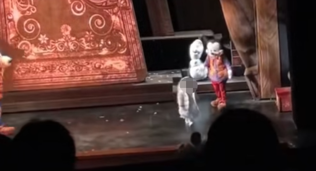 据知情人士周女士称,孩子看起来五六岁,可能是家长怂恿上台,最后孩子和家长被带离,设备调试后,演出继续。