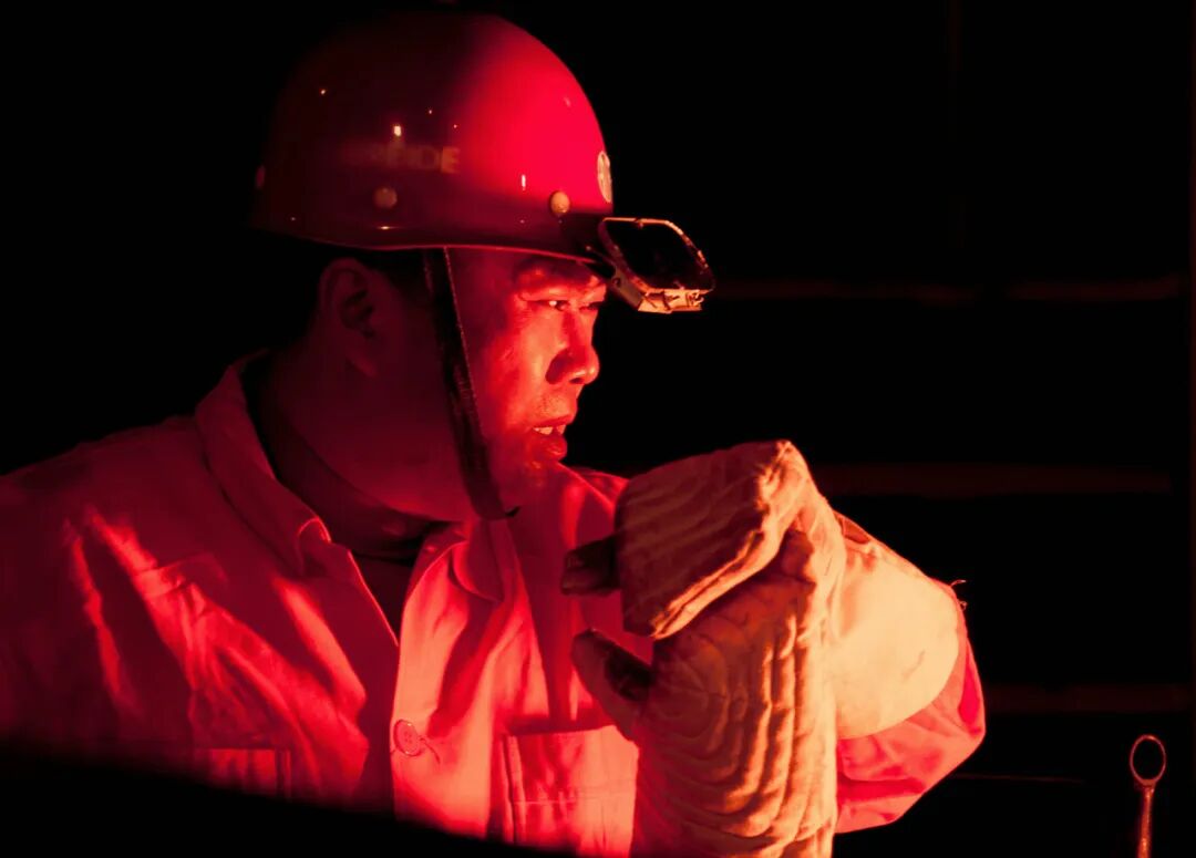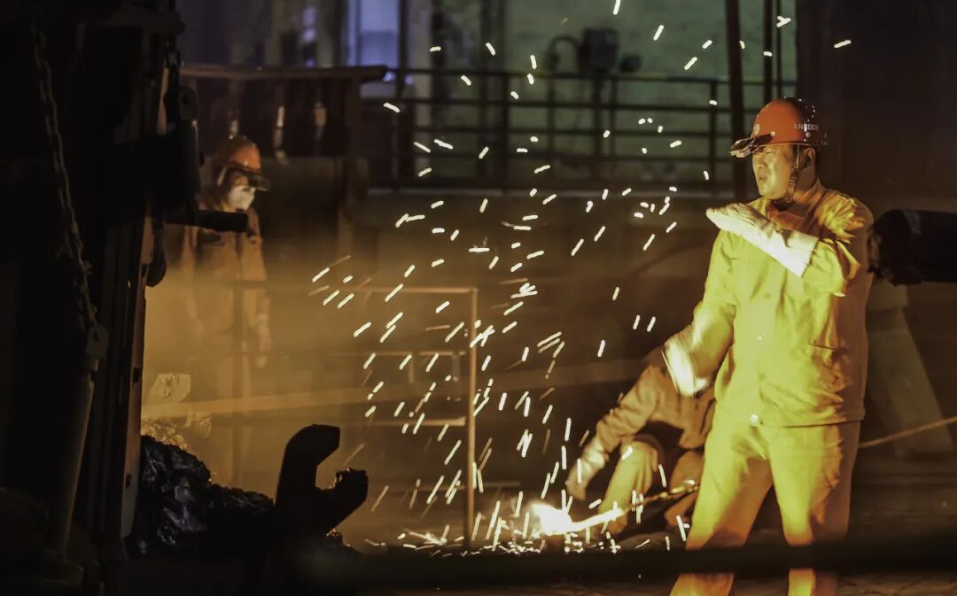 1600摄氏度的钢水在电炉内翻滚,不时涌起的火光将整个车间染成熔岩般的赤色。杨金安身着橙色阻燃服,布满汗珠的面庞被钢水映得如同青铜浮雕,镜片后的双眼却始终如炬。