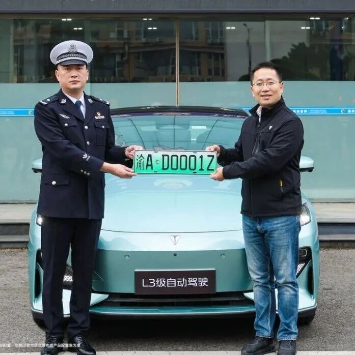 新华社重庆12月20日电 20日,国内首块L3级自动驾驶专用正式号牌“渝AD0001Z”在重庆诞生,由重庆市公安局交通管理总队正式授予长安汽车,标志着长安汽车在国内率先开启L3级自动驾驶时代。