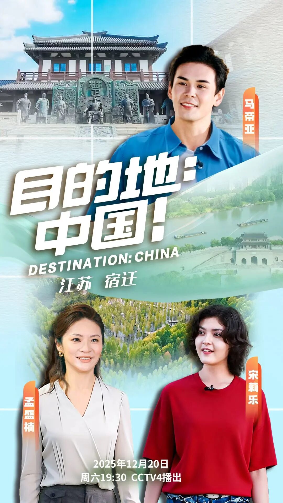 《目的地:中国!》全新旅程启航!12月20日19:30锁定CCTV-4,来自意大利与美国的两位免签探路官马帝亚、宋莉乐,将与总台主持人孟盛楠同行,走进江苏宿迁。