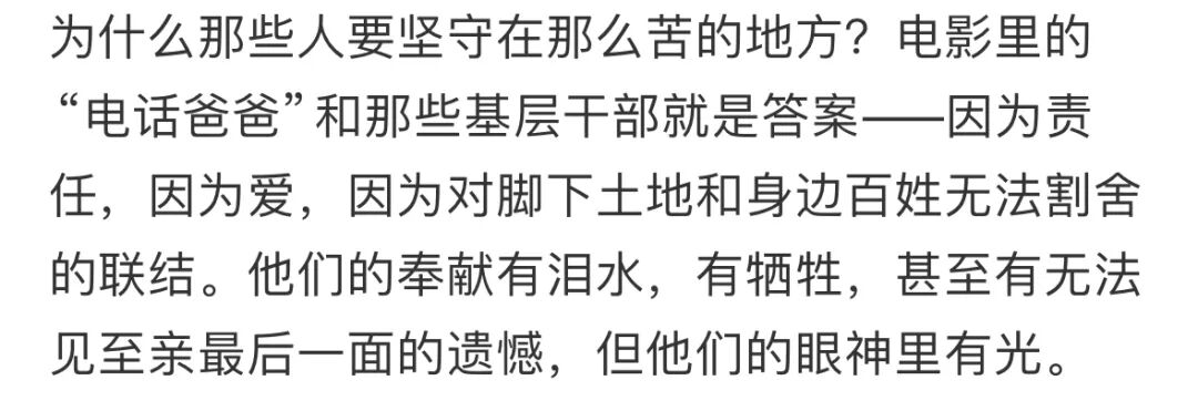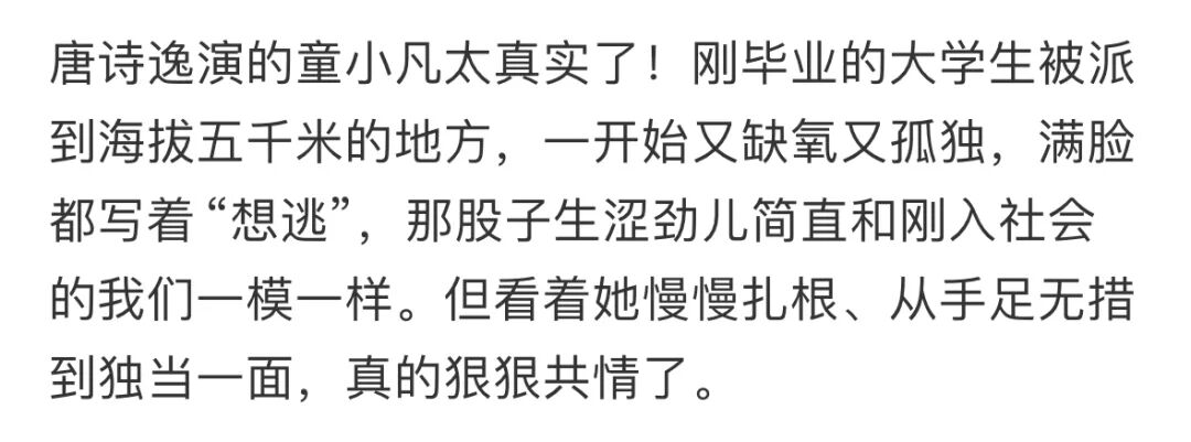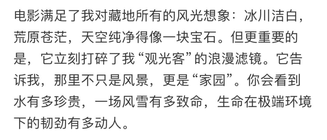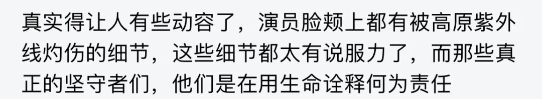 许多观众通过电影对高海拔地区的生活有了具体认知。正如一个影评所写“它立刻打碎了我‘观光客’的浪漫滤镜。他告诉我,那里不只是风景,更是家园。”有观众特别提到:“电影里的干部不是‘高高在上’的英雄,就是普通人,会想家、会疲惫,但依然选择坚持,这反而更让人敬佩。”