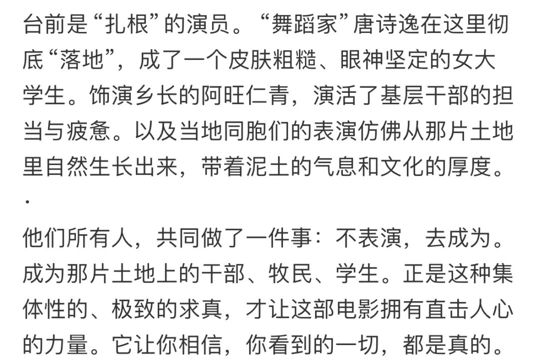 不少在藏工作或曾援藏的干部看完电影后很有感触。有人在社交媒体分享:“好几个场景都让我想起自己在基层的时候,条件艰苦,但心里是满的。”
