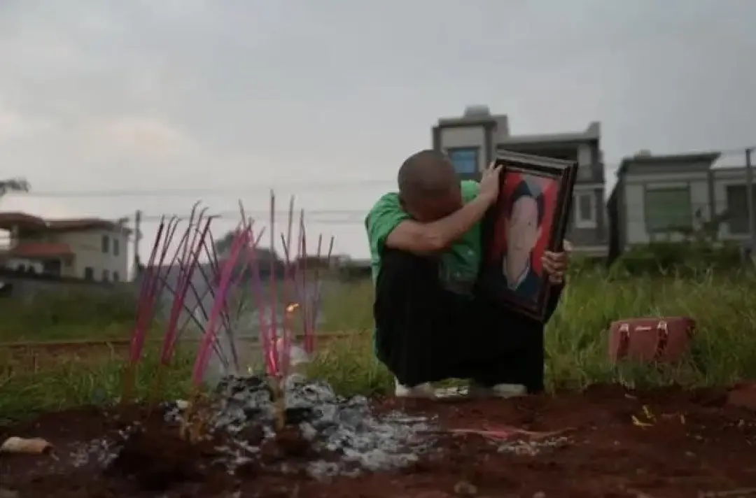 2024年11月,李海玉手捧着父亲的遗像,祭拜弟弟。