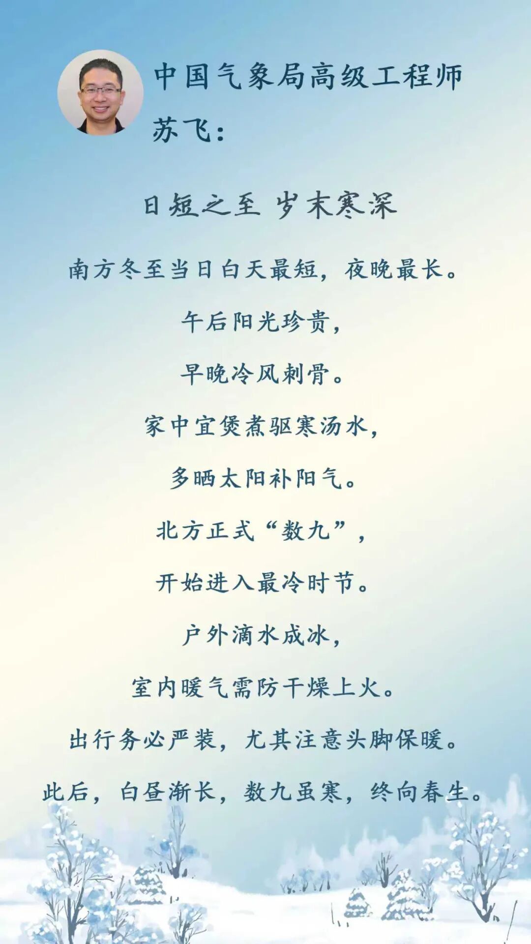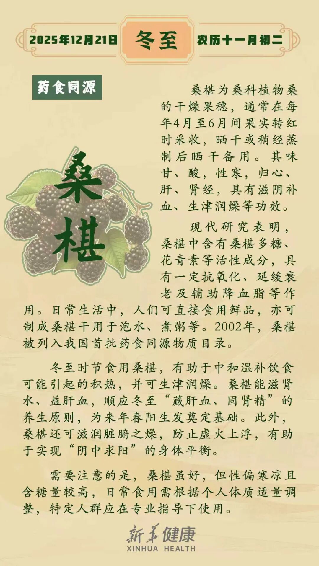 冬至预示着一年之中最寒冷的时间即将到来。在注意心血管疾病、呼吸系统疾病,以及骨折摔伤等冬季易发疾病的预防的同时,养生方面要顺应“阴盛于外,阳生于内”的特点,把握阴阳之间微妙的变化,注意护阳守阴。