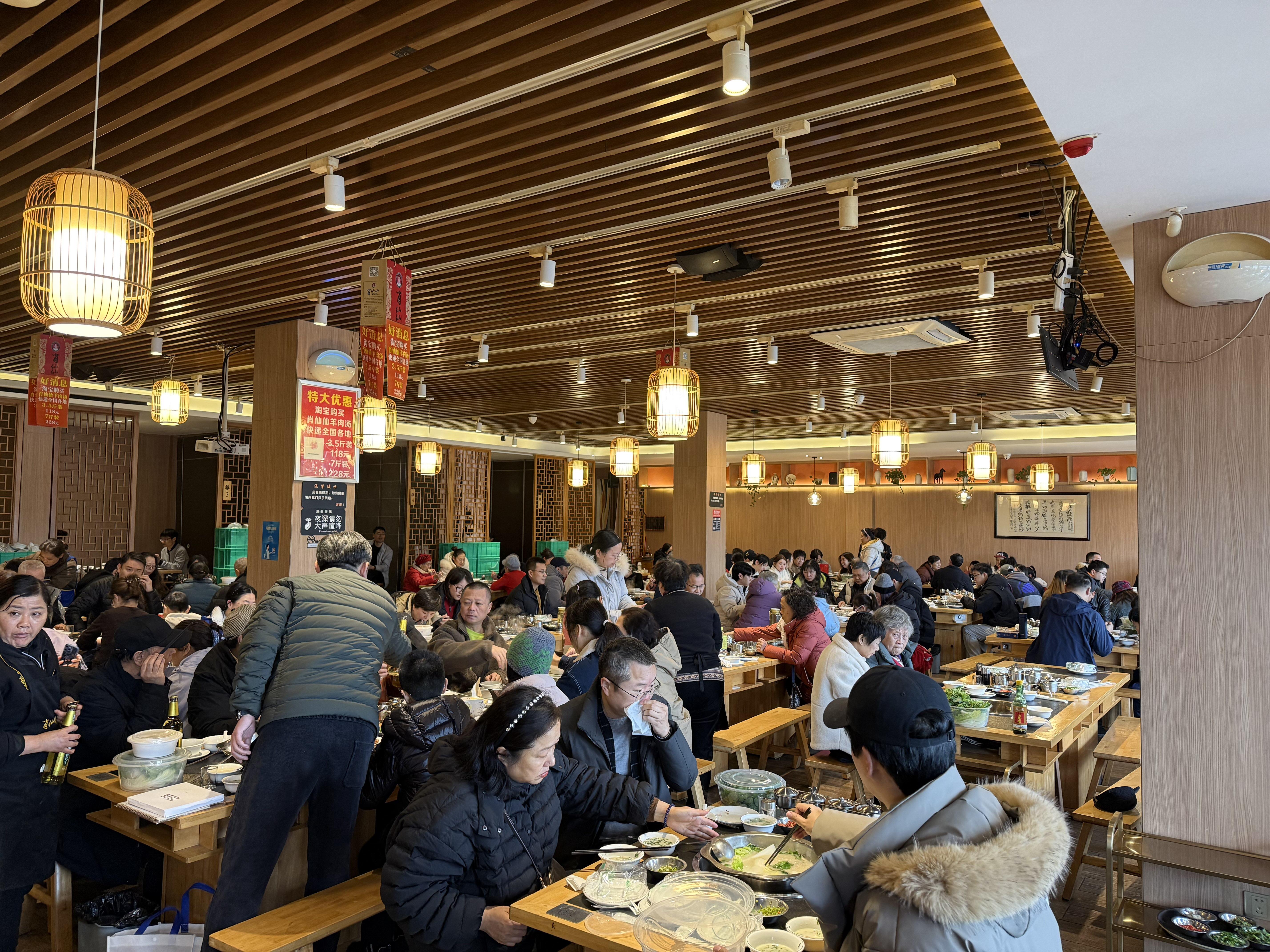 也有商家特别推出了外卖打包服务。相比于店内用餐的118元/斤,打包价格更便宜一些,为98元/斤。“明天可能要涨一点。”老板李女士说,冬至前一晚,堂食生意不如往年,但有不少食客提前打包,“差不多打包了一百单。”
