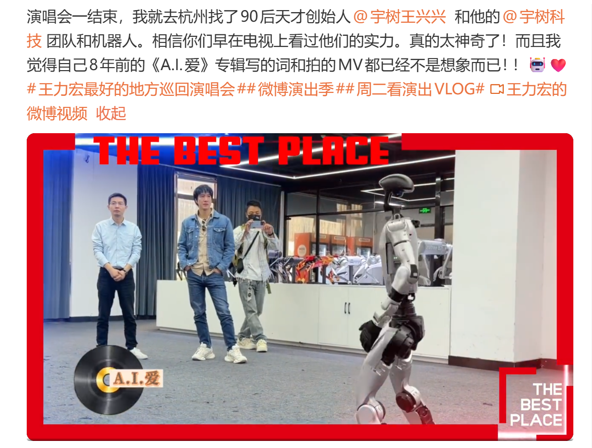 王力宏在今年10月拜访宇树科技,其微博个人动态截图。