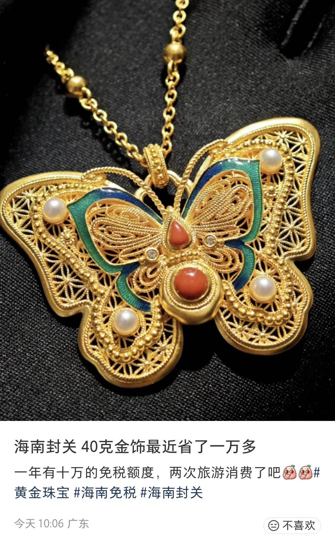 如此显著的价格优势,相当于用34克左右的价格就能买到40克足金。“省下的差价足以覆盖此次海南之行的大部分开销,而且每年10万元的免税额度,完全能满足黄金消费需求。”邹女士说。