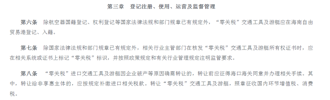 此外,“零关税”进口交通工具及游艇因企业破产等原因确需转让的,转让前应征得海口海关同意并办理相关手续。其中,转让给非享惠主体的,应按规定补缴进口相关税款。转让“零关税”交通工具及游艇,照章征收国内环节增值税、消费税。
