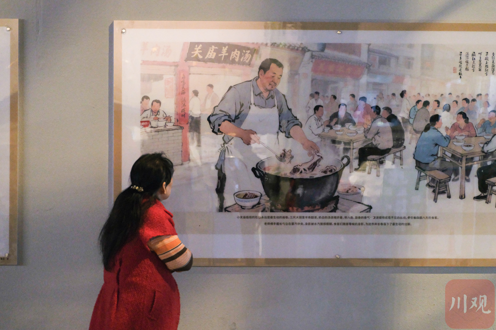 小关庙羊肉汤一条街内,店铺墙面上张贴的街区羊肉汤历史资料墙,记录羊肉汤经营沿革。