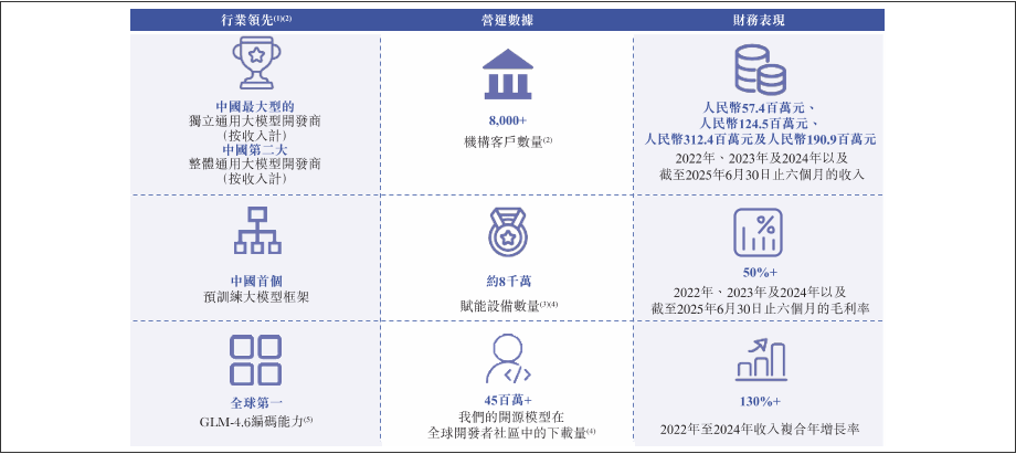 该公司招股书显示,2022年—2024年,智谱的营业收入分别为5740万元、1.25亿元、3.12亿元,连续三年营收翻倍,年复合增长率达130%;2025年上半年营业收入为1.9亿元。毛利率一直保持在50%以上,2022年—2024年分别是54.6%、64.6%、56.3%,2025年上半年为50%。