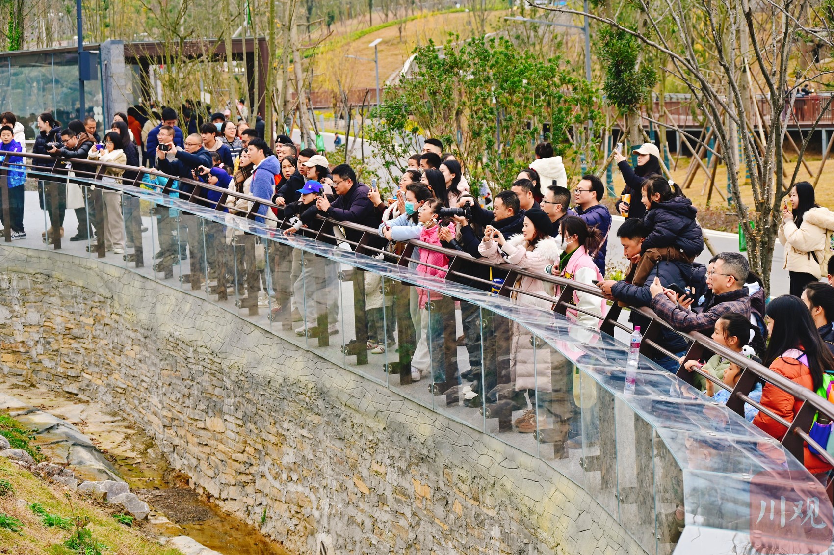 市民参观大熊猫园区。