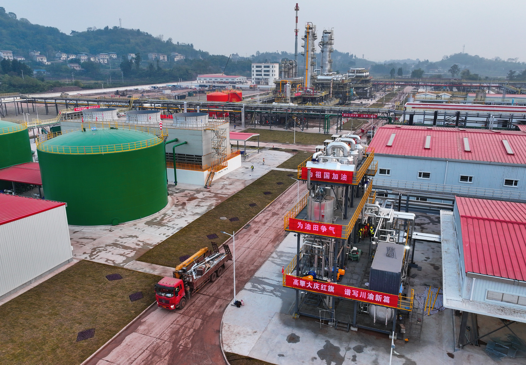 12月21日,在武胜县大庆油田武胜天然气净化厂,工人们锚定“月底投产试运行”目标,系统联动调试进行最后收尾。该项目是大庆油田在川渝地区首个含硫天然气净化厂,净化后的商品气将直输国家管网,服务东部乃至北京地区。