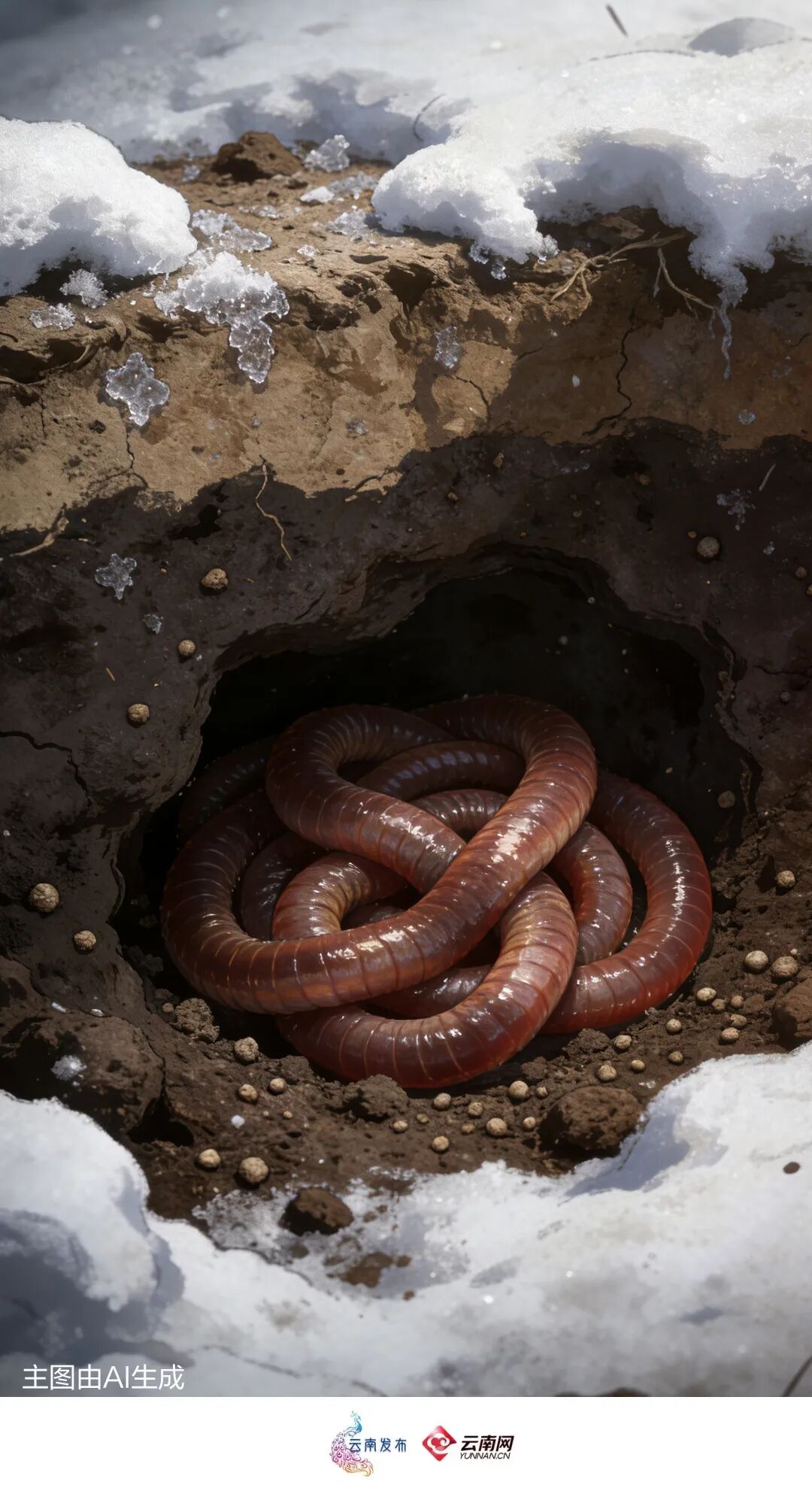 古人云:冬至节,春之先声也。然而,笼罩天地的肃杀阴寒之气却仍然是剧烈的,甚至更加浓厚了。聪明的先人用冬至初候“蚯蚓结”的物候现象,提醒人们这一点。传说蚯蚓是阴曲阳伸的生物,此时阳气虽已生长,但阴气仍然十分强盛,土中的蚯蚓仍然蜷缩着身体,交相结而如绳也。