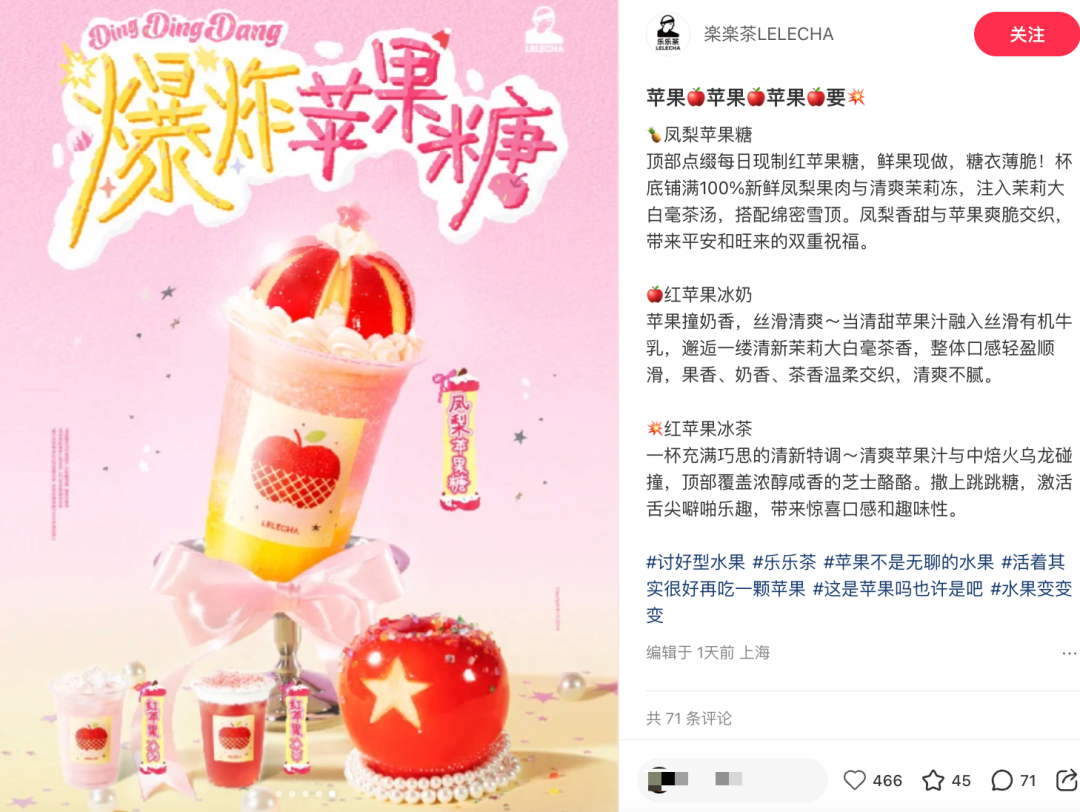 近日,知名奶茶品牌乐乐茶推出新品“苹果糖”饮品,被大批网友发帖吐槽。