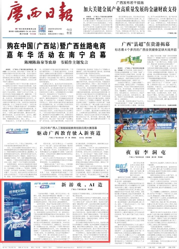 凭借AI技术对游戏生产流程的重塑,Creat-AI也获得了专业领域的认可。日前在广西举办的2025“人工智能+电竞”创新应用大赛中,桂游星火团队摘得“最佳项目大奖”。这份荣誉在赛后迅速转化为实实在在的“引力”,广西本地的专业游戏人才纷纷加盟,技术带来的人才聚集效应初见端倪。