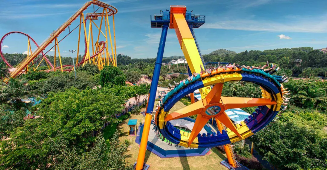 垂直过山车和超级大摆锤。图据广州长隆度假区网站