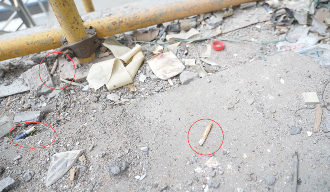 检查中,发现多处施工现场有烟头,疑似施工人员在工地抽烟。在中国建设银行股份有限公司肇庆市分行外墙施工的现场,考核巡查组发现了多个烟头和烟盒;在铁路和高速公路施工的隧道中,也有看到烟头的存在。