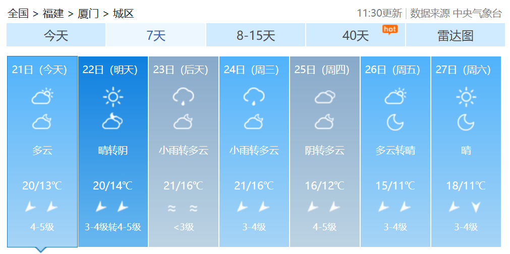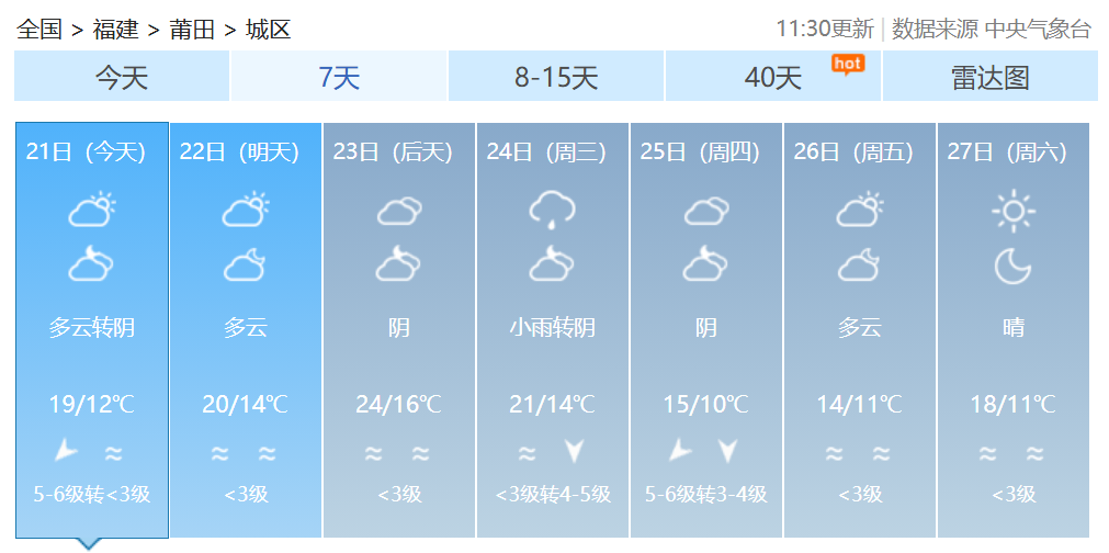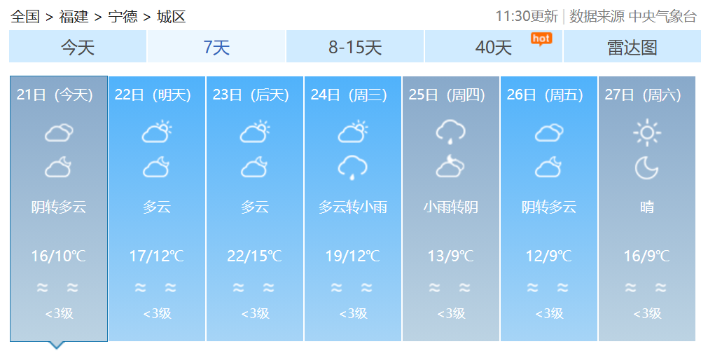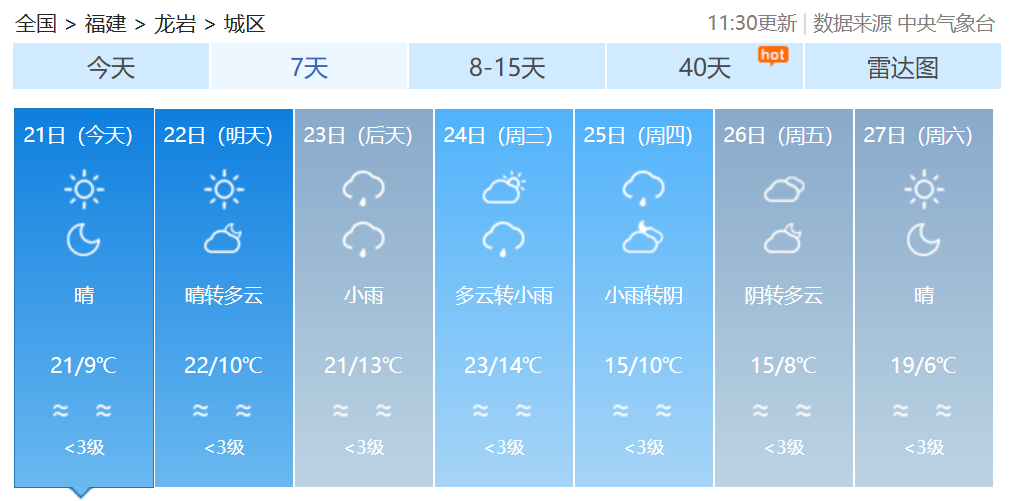 福建各地一周天气预报↓