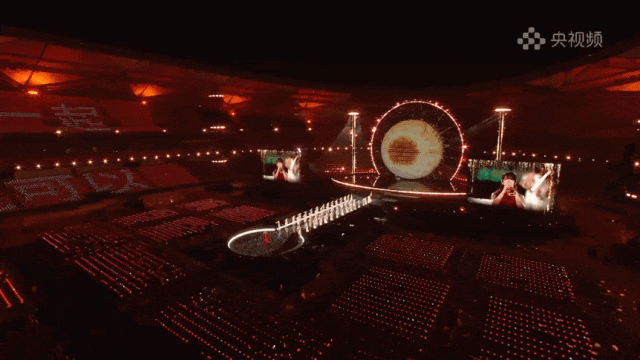 光,也是这场叙事中无声的语言。灯光总监董江从鸿蒙系统的开机动画中汲取灵感,将极具辨识度的“星环”造型贯穿整个场馆空间。设计团队不仅用数百台灯光设备在舞台上空构建了一个直径31米的超级光环,更在体育场内竖立起8组高达24米的立体灯光塔,让每一位观众都被笼罩在“在一起”的视觉叙事之中。据总导演田梅介绍,那打动了无数网友、点缀在观众席上的四万盏灯球,并非轻易铺就的背景,而是历经超百位工人三次接力安装、反复调试才得以呈现的呼吸光海。最初,这一设计曾因执行难度而面临调整,但在总导演田梅的坚持下,最终被完整保留。在她看来,这片星海是对盛典主题内核的生动诠释:“‘在一起,就可以’不仅是一句口号,更是对这个时代最温暖的注脚。它告诉我们:再遥远的梦想,也终将在并肩同行中,变得触手可及。”随着节目播出,灯球呈现出“在一起,就可以”“鸿蒙星光盛典”等字符,明亮而浪漫。四万星光分散在每一张座椅上,如同散落在千行百业、千家万户中的每一个开发者与用户;它们又能连成一片星海,展现出“在一起,就可以”的力量。