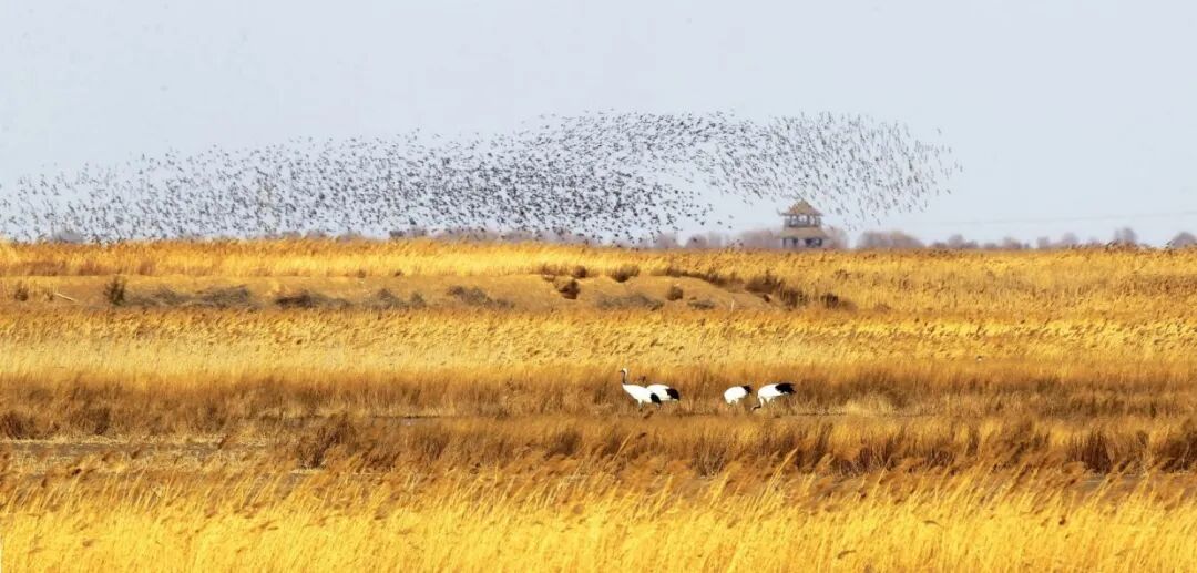 多年来,保护区持续开展生态修复与保护,重点加强对东方白鹳、黑嘴鸥、鹤类等关键物种栖息地保护和智慧化监测,这片昔日的盐碱荒滩已成为名副其实的候鸟“国际机场”。2025年,东方白鹳繁殖233巢、536只幼鸟,创历年新高,已累计繁殖4260只;黑嘴鸥年繁殖种群数量稳定在1万余只。鸟类由建区之初的187种增加到406种,每年迁徙越冬的数量达到数百万只。