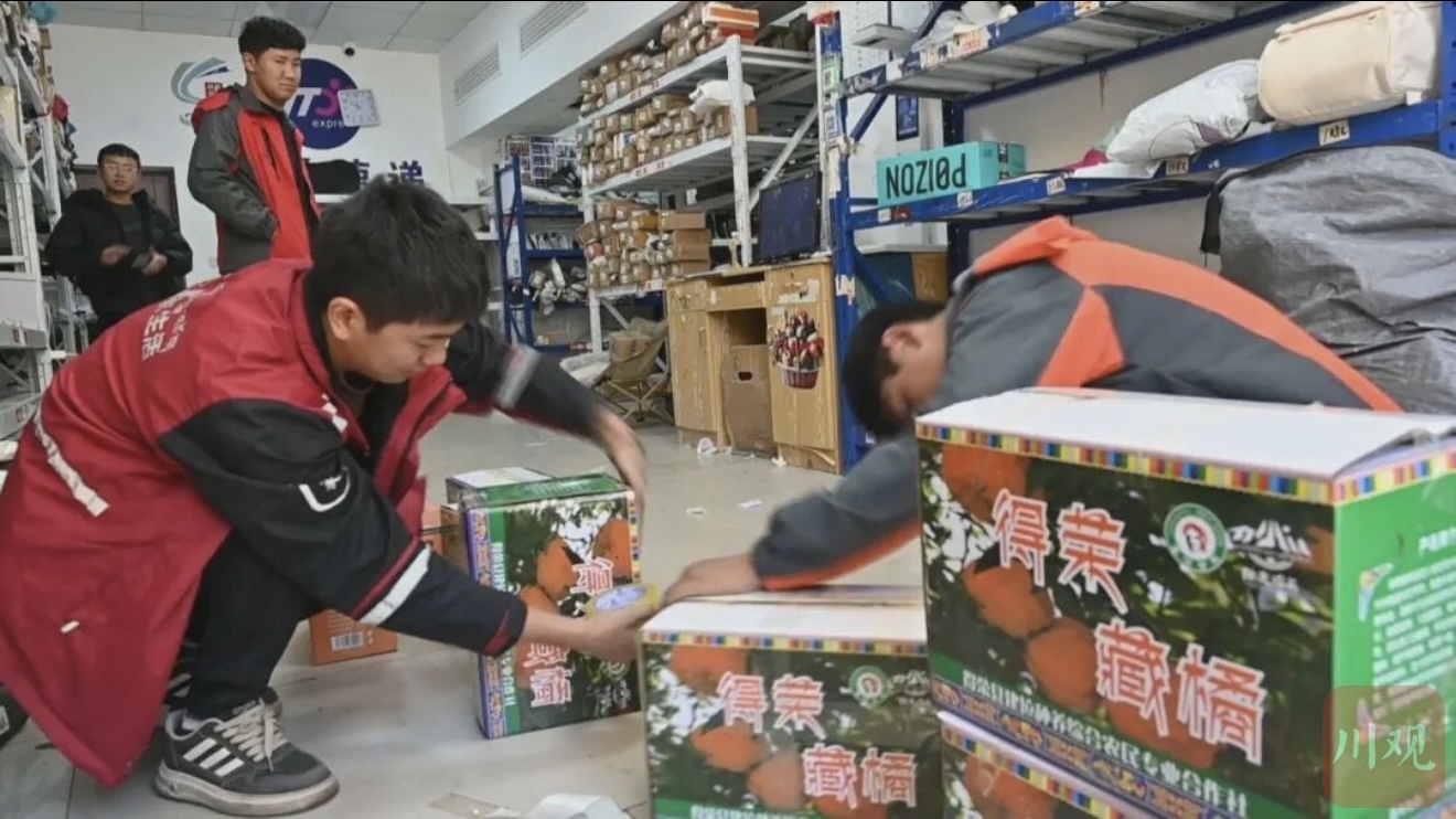 近日,甘孜州得荣县甲音村的村级物流驿站内,一片繁忙。贴有“得荣藏橘”标识的专用快递箱被快速装箱、分拣。不到5个小时,1000箱清晨采摘的藏橘已整装待发,即将通过冷链专车驰往杭州。