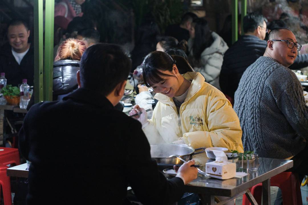 市民张女士一行人临时决定就餐,晚上7点10分抵达时,被告知需要排队。不过,在7点半左右,桌位已陆续空出。黄女士说,冬至来“羊肉汤一条街”,吃的就是氛围感,“热热闹闹,希望新的一年日子也越来越红火。”