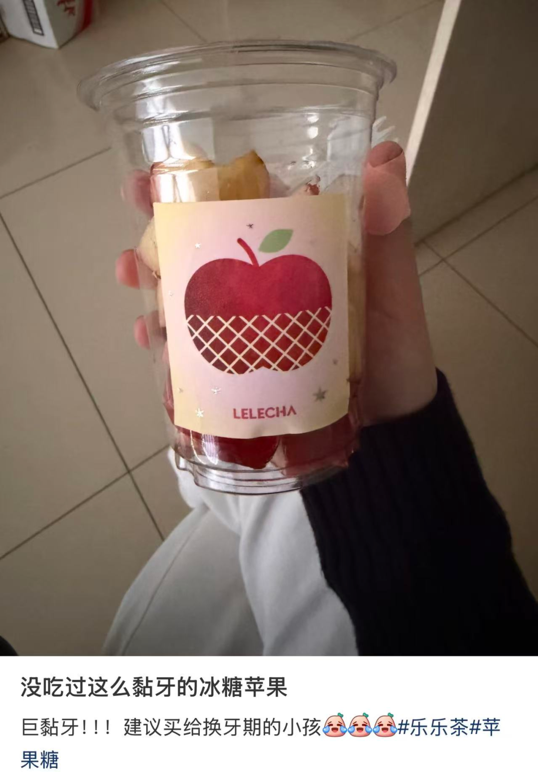 近日,有多名网友发帖称知名奶茶品牌乐乐茶的新品“苹果糖”不好喝:“一口下去牙冠都要被粘下来了。”