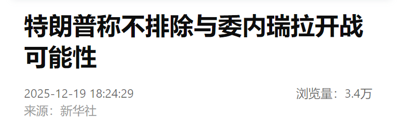 据美国媒体19日报道,美国总统特朗普在接受采访时说,不排除与委内瑞拉开战的可能性。
