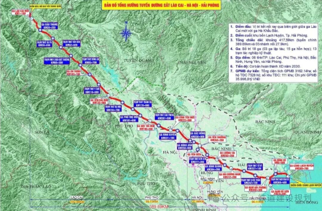 越南“老街-河内-海防”标准轨铁路是越南北部最重要的国家级铁路工程之一,连接中越边境、河内首都经济圈与北部最大深水港。