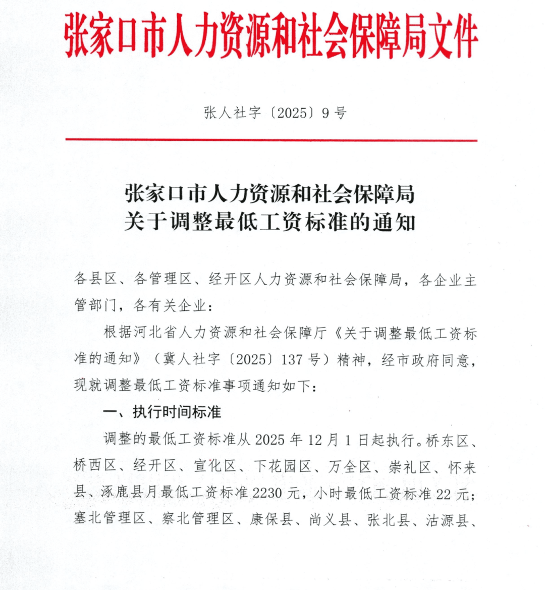 根据河北省人力资源和社会保障厅印发的《关于调整最低工资标准的通知》(冀人社字〔2025〕137号)要求,经研究,确定各县(市、区)最低工资标准。现对最低工资标准的有关内容作以下解读。
