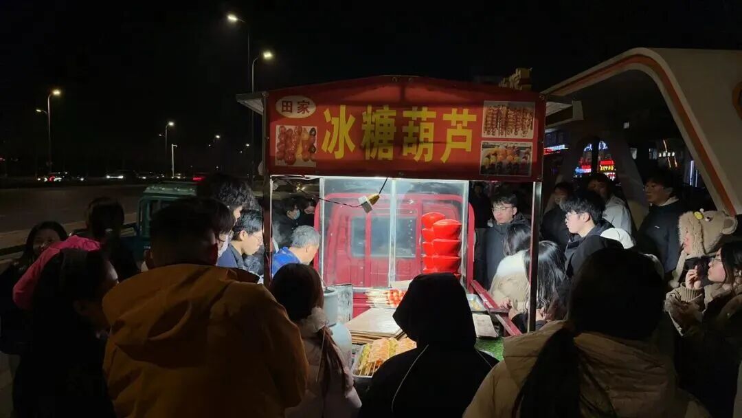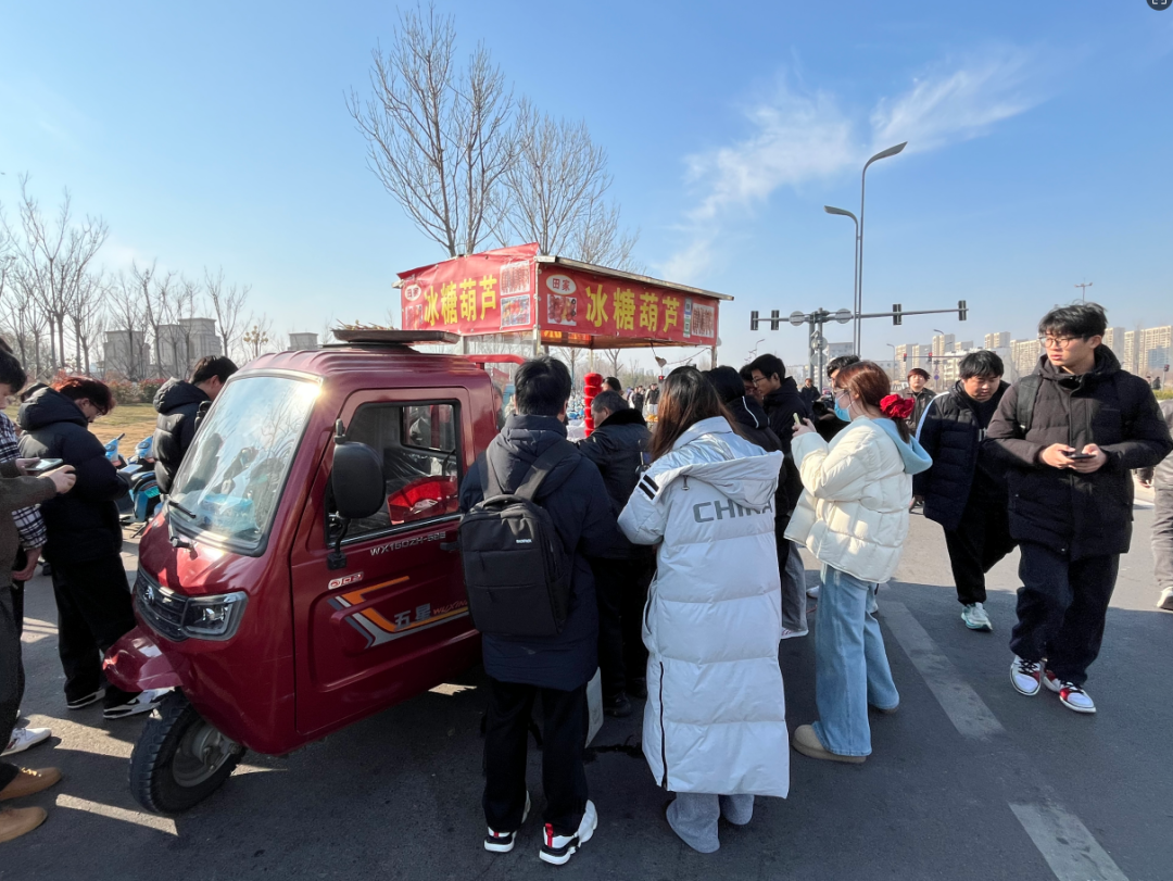 寒风中大学生们排队一个半小时“多买一串爷爷就能早点回家”