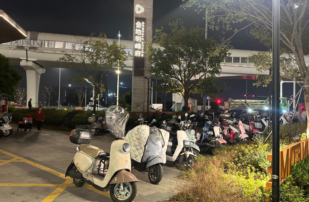 近日,有市民反映光明区金地明峰府小区附近电动自行车密集停放,存在较高自燃风险。记者实地探访发现,该小区位于地铁6号线(光明线)薯田埔地铁站B口步行100米处,地理位置便捷。